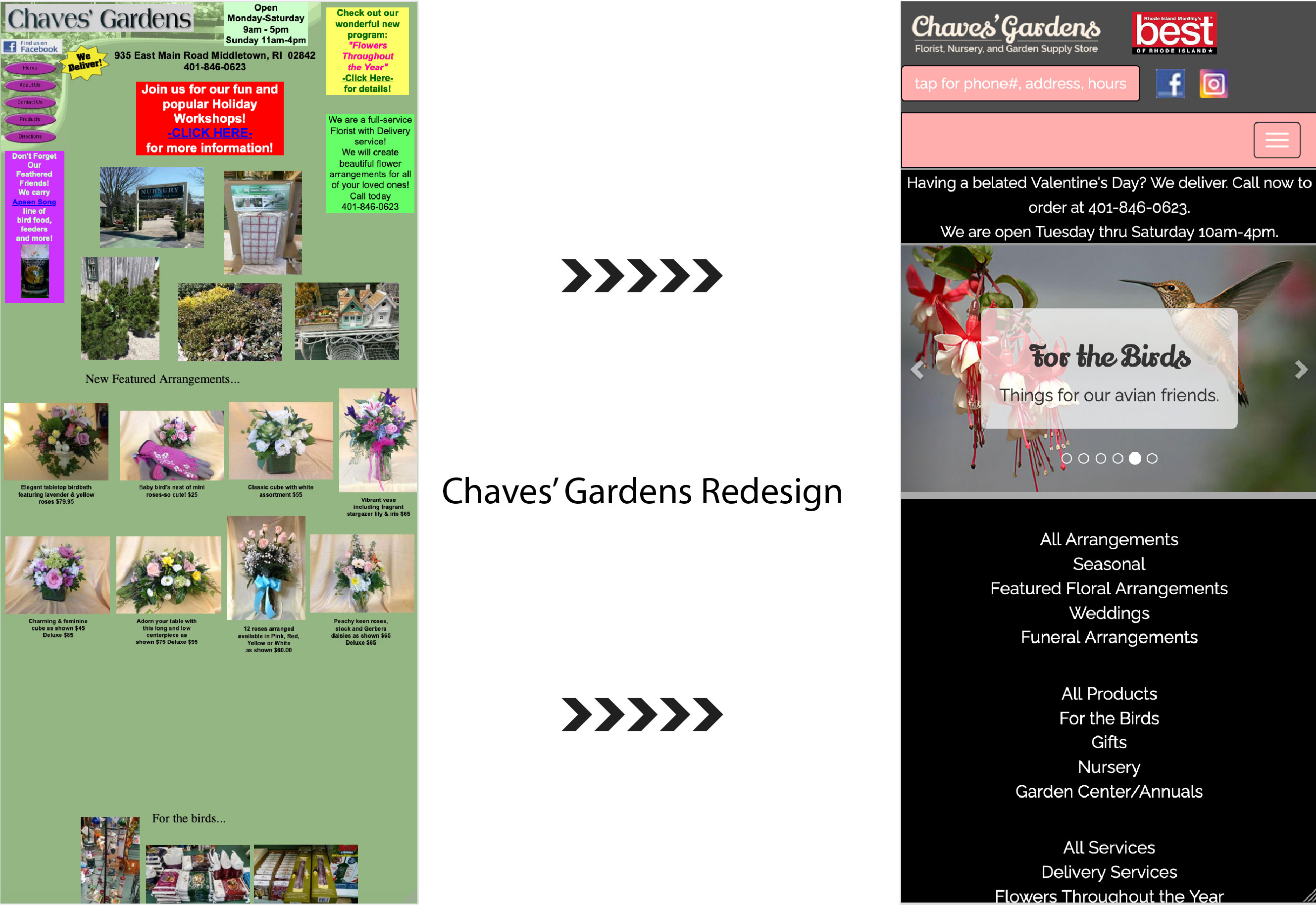 Hello, my name is Kelly Beshara-Flynn. I am a Graphic Designer, User Experience Designer, and Front-End Web Developer. I am well versed in Adobe Photoshop, Illustrator, and InDesign. I can design and develop responsive websites using HTML, CSS, Bootstrap, and JavaScript. I designed and developed this website and the website for Chave's Gardens. Please feel free to contact me or have a look at my portfolio below.