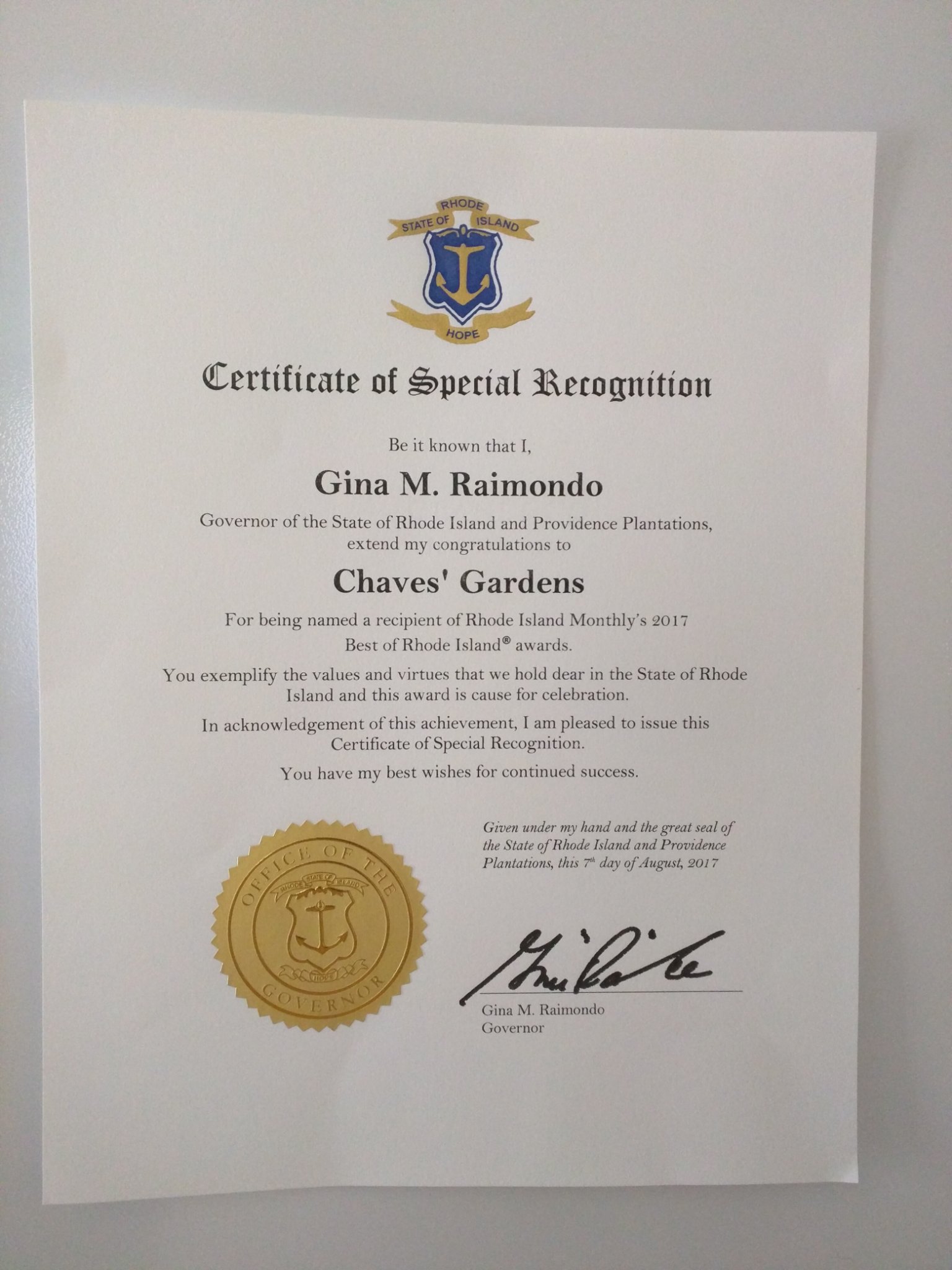 Award winning florists are available to create unique, personal designs. The staff at Chaves' Gardens can help you with all of your gardening, decorating, and floral design needs.
